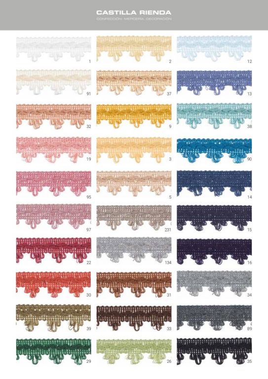 Galón pasamaneria de 2,5cm aproximadamente, acrílico. En piezas de 25 metros.