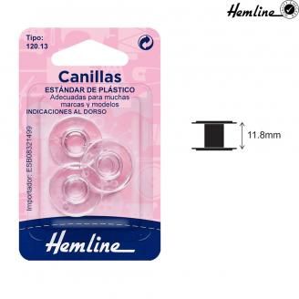 Canilla estándar de plastico, valida para Singer, Bernette y muchas otras maquinas con carga frontal de portacanillas. Venta por blíster de 3 piezas.