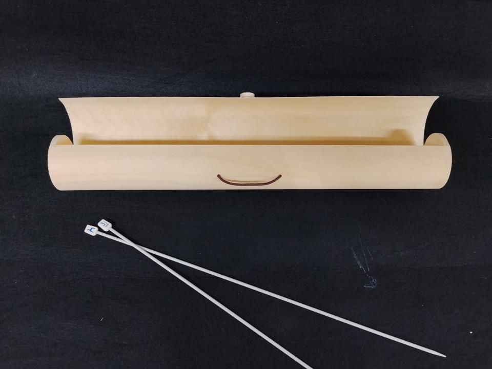 Funda de lamina de madera para agujas de tricotar. Medida 41,5x6x6cm, venta por unidad.
