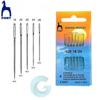 Aguja coser lana con punta, surtida del 18 al 24. Venta por caja de 5 sobres con 6 agujas cada uno.