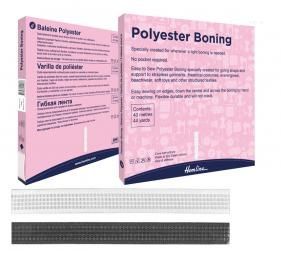 Ballena de coser en poliéster, especialmente indicada para cuando se necesita un refuerzo ligero. Flexible, resistente y no se agrieta. Venta en caja de 40 metros.