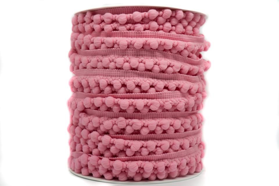 Pieza de madroño de 2cm de ancho total y bola de 1cm de diametro. Venta por piezas de 52 metros aprox., el metraje puede variar y se cobrara los metros que traiga la pieza.