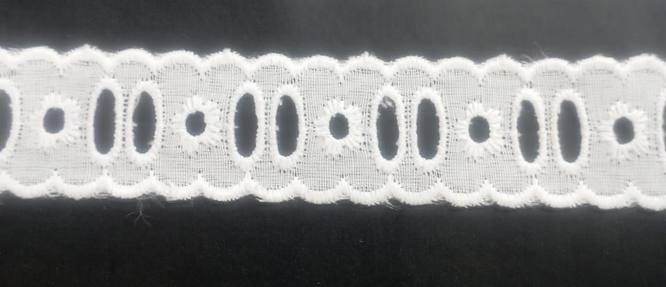 Pasacinta bordado blanco de 2,6cm aproximadamente. Venta pieza de 24 metros.