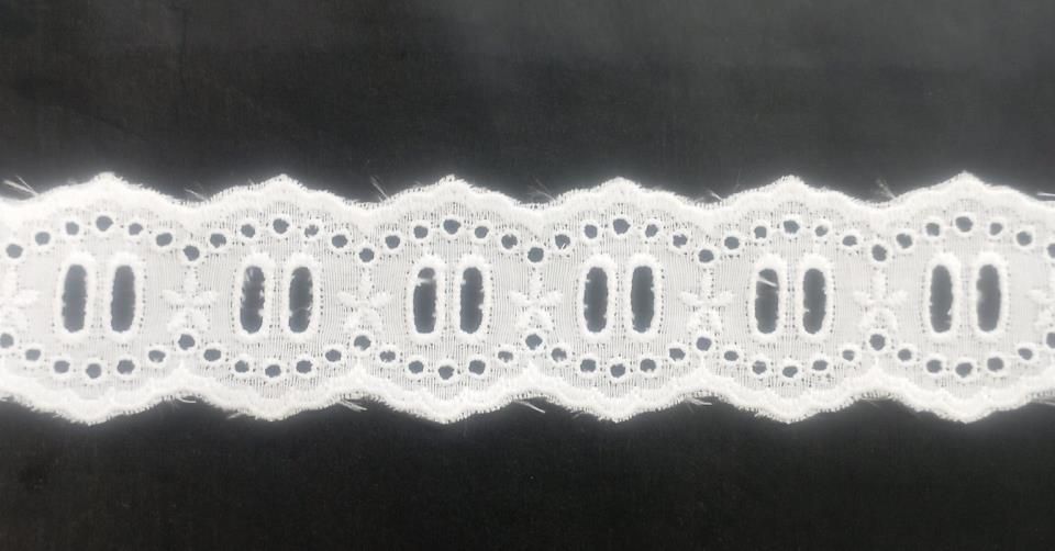 Pasacinta bordado blanco de 3,5cm aproximadamente. Venta pieza de 24 metros.