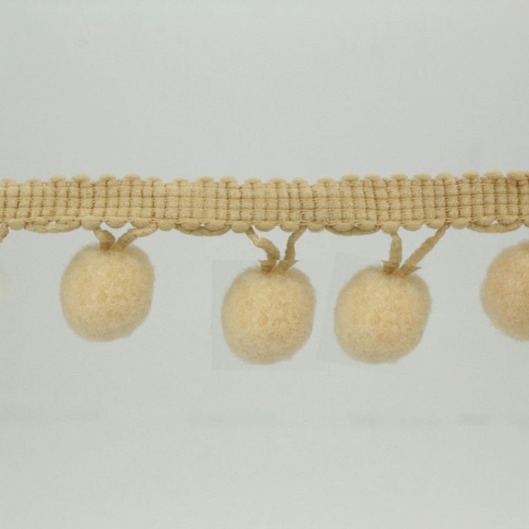 Pieza de madroño poliamida de 2,5cm de ancho total y bola de 1,5cm de diametro. Venta por piezas de 25 o 50 metros aprox segun fabricacion, se cobrara los metros que traiga la pieza.