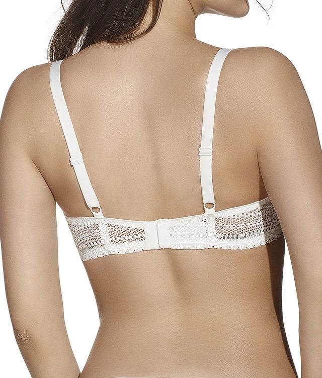 Sujetador bralette de encaje tipo 'crochet' con aros y copa de relleno. Venta por unidad.