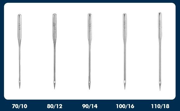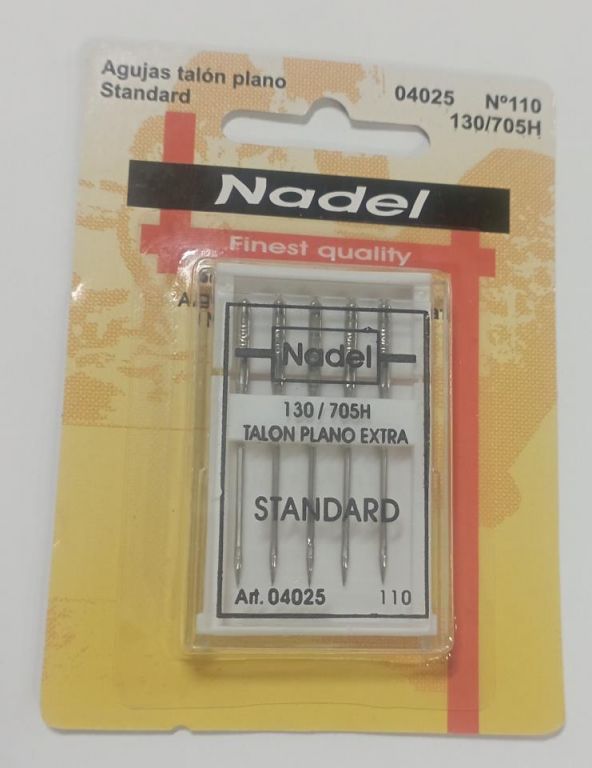 Aguja para coser a maquina con talon plano del numero 110 130 705H. Venta por pack de 5 agujas.