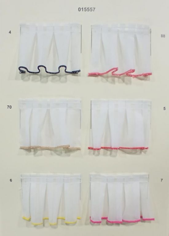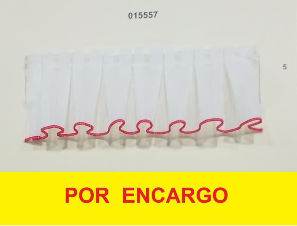 Carrucha blanca plisada con cordon en distinto color, de 6cm. Venta en pieza de 25 metros.