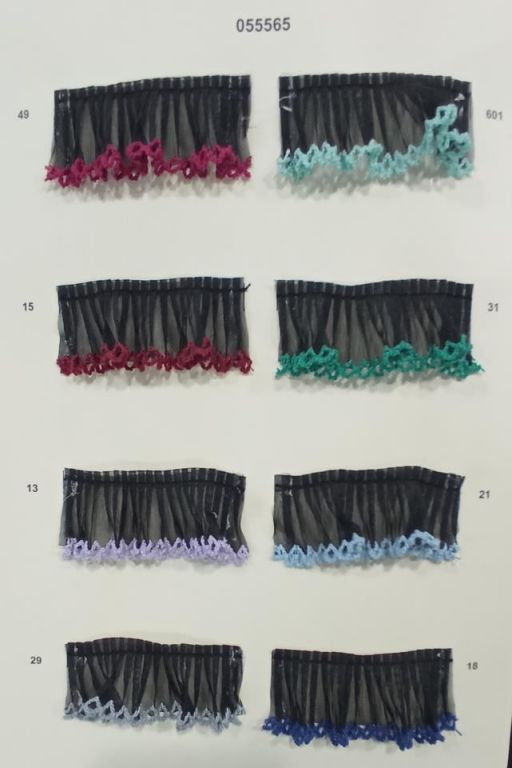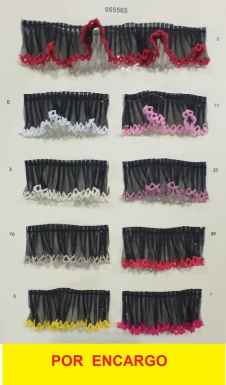 Plisado negro con piquillo en distinto color, de 3,5cm. Venta en piezas de 25 metros.