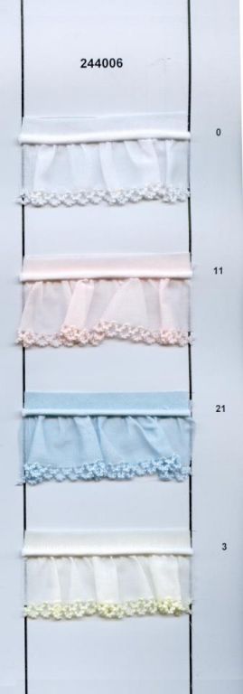 Encaje vivo mecha con plisado de 3cm aproximadamente. Venta pieza de 25 metros.