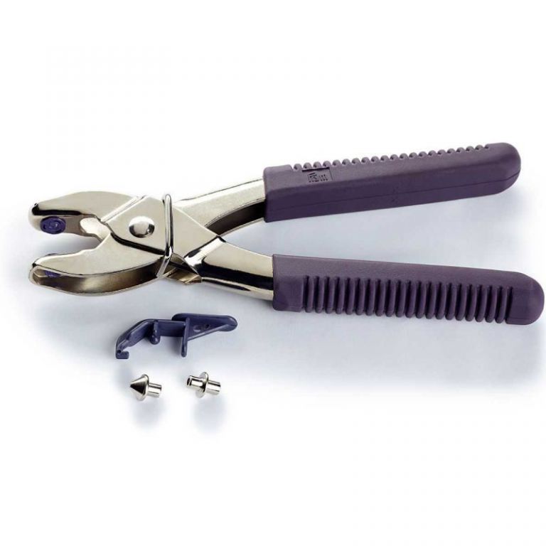 Tenaza o alicate especial para aplicar los botones remachables de la gama anorak, jersey, sports, camping etc. Cambiando los adaptadores de para cada modelo, nos facilitará muchísimo la tarea de colocarlos. Incluye dos accesorios para hacer agujeros de 3mm y 4mm. Venta por unidad.
