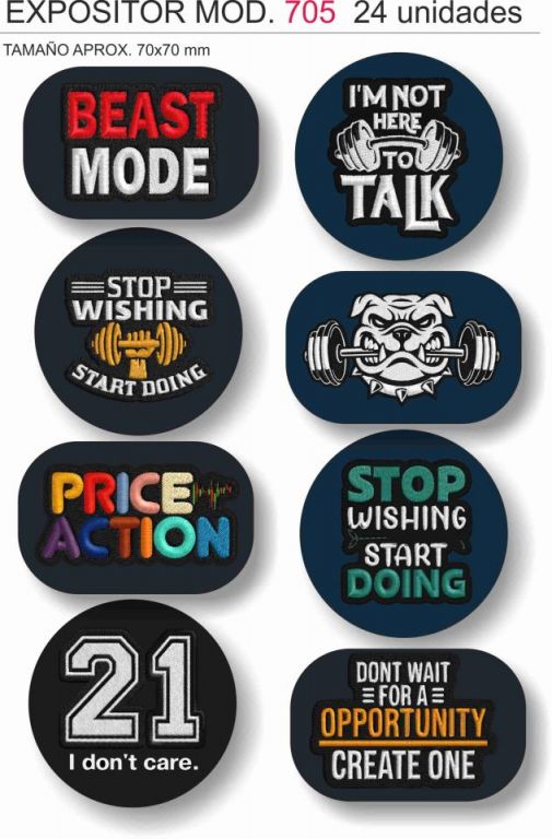Expositor parches termoadhesivos. Venta por pack de 24 unidades.