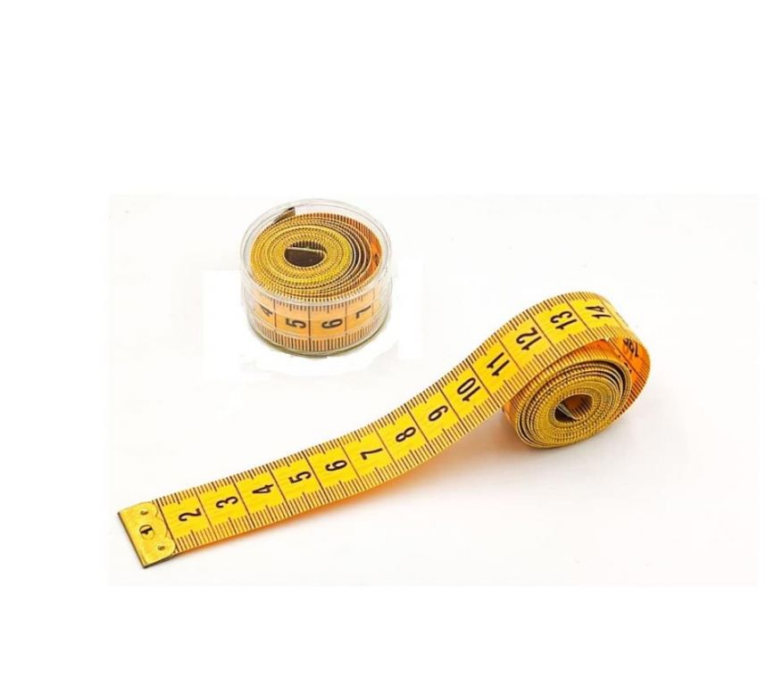 Cinta métrica amarilla de 150cm por las dos caras. Venta por pack de 12 unidades.