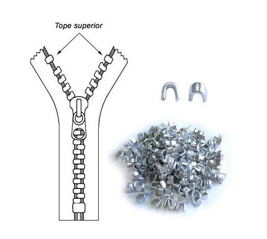 Tope superior de metal para cremalleras de malla 3. Venta en bolsa de 200 pares.