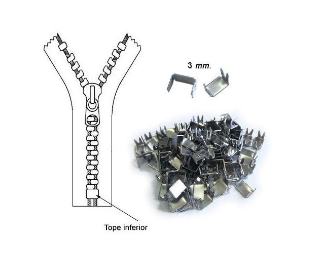 Tope inferior de metal para cremalleras de malla 3. Venta en bolsas de 200 unidades.