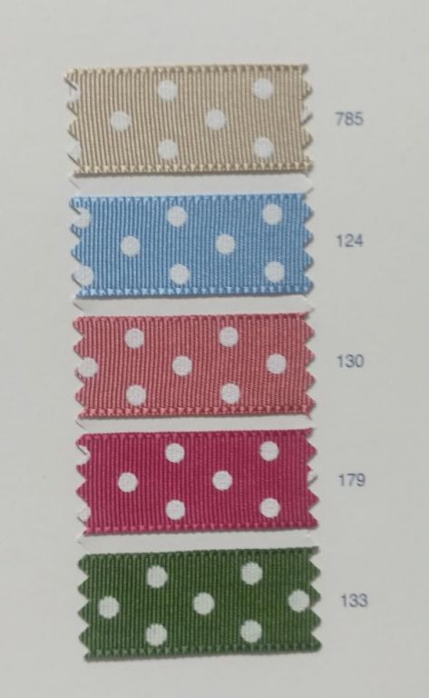 Cinta falla de lunares ancho 48mm, 100% poliester. Venta por pieza de 25 metros.