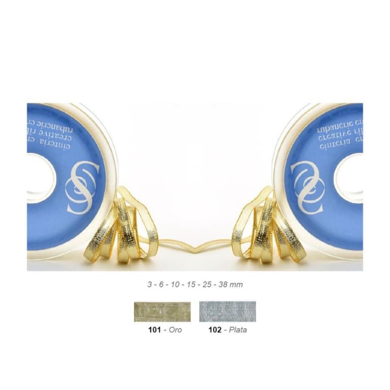 Cinta metalizada de 3mm, 70% PES y 30% PA. Venta por pieza de 25 metros.