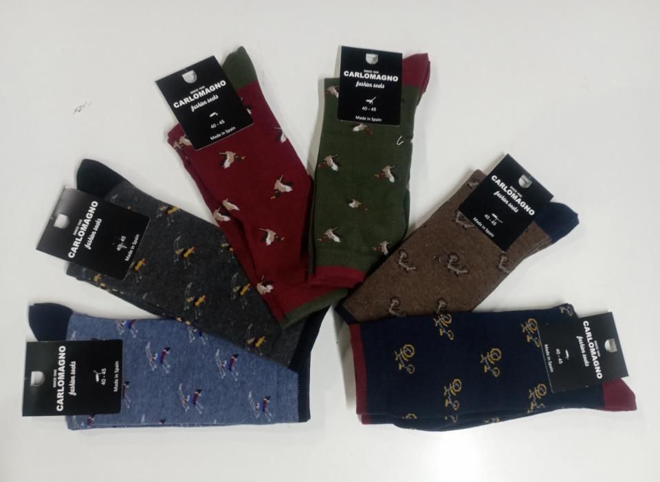 Calcetín caballero fantasía bicicleta/pato/esquiador. Venta por cajita 6 unidades.
