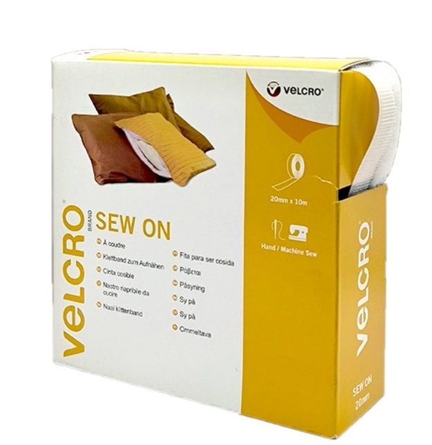 Velcro para coser en caja en distintos colores. Contiene las dos partes. Tamaño 20mm. Venta por caja de 10 metros.