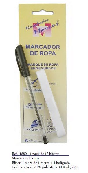 Bolígrafo marcador permanente con cinta termoadhesiva de 1 metro. Venta por pack de 6 unidades.